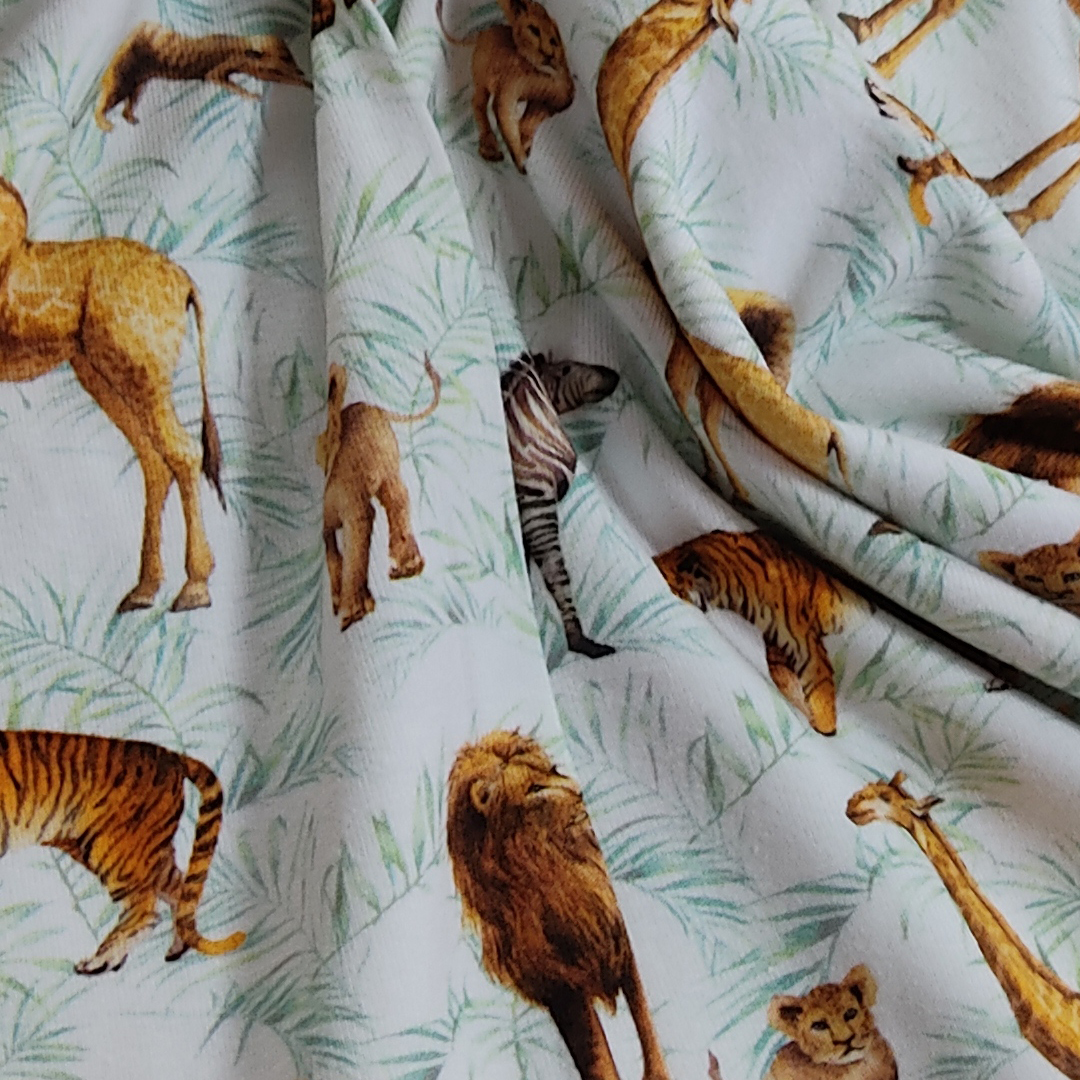 Tela punto de camiseta. Tela con motivos de animales de la selva.
