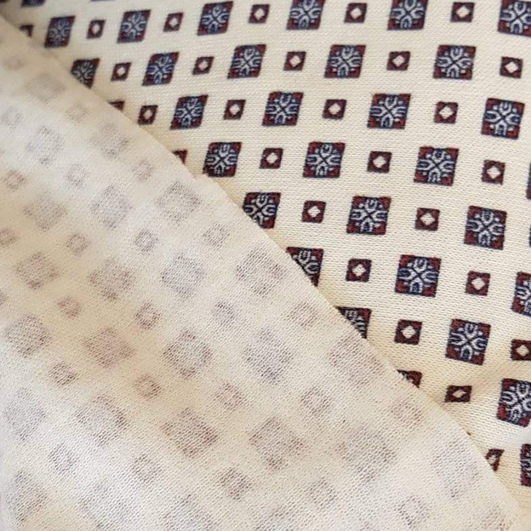 Tela punto de sudadera. Tela en color blanco con estampado de cuadros.