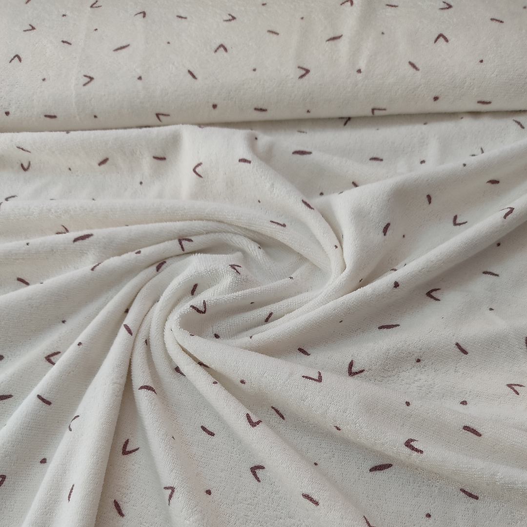 Tela punto de sudadera. Tela blanca con motivos abstractos.